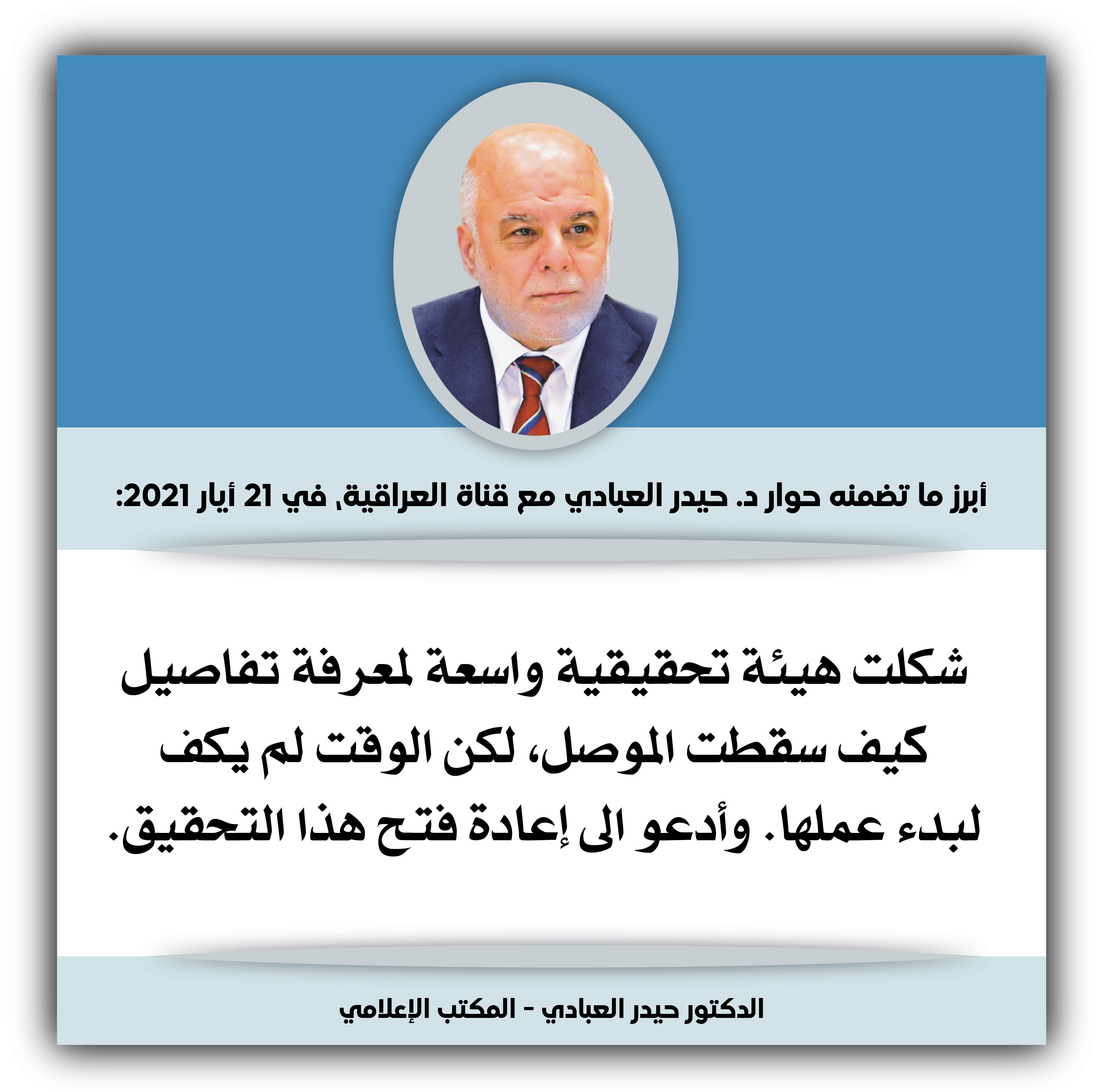 • العبادي: أنصح رئيس الوزراء بعدم الدخول في المعارك الجانبية وأن يركز في الأمور الأساسية
