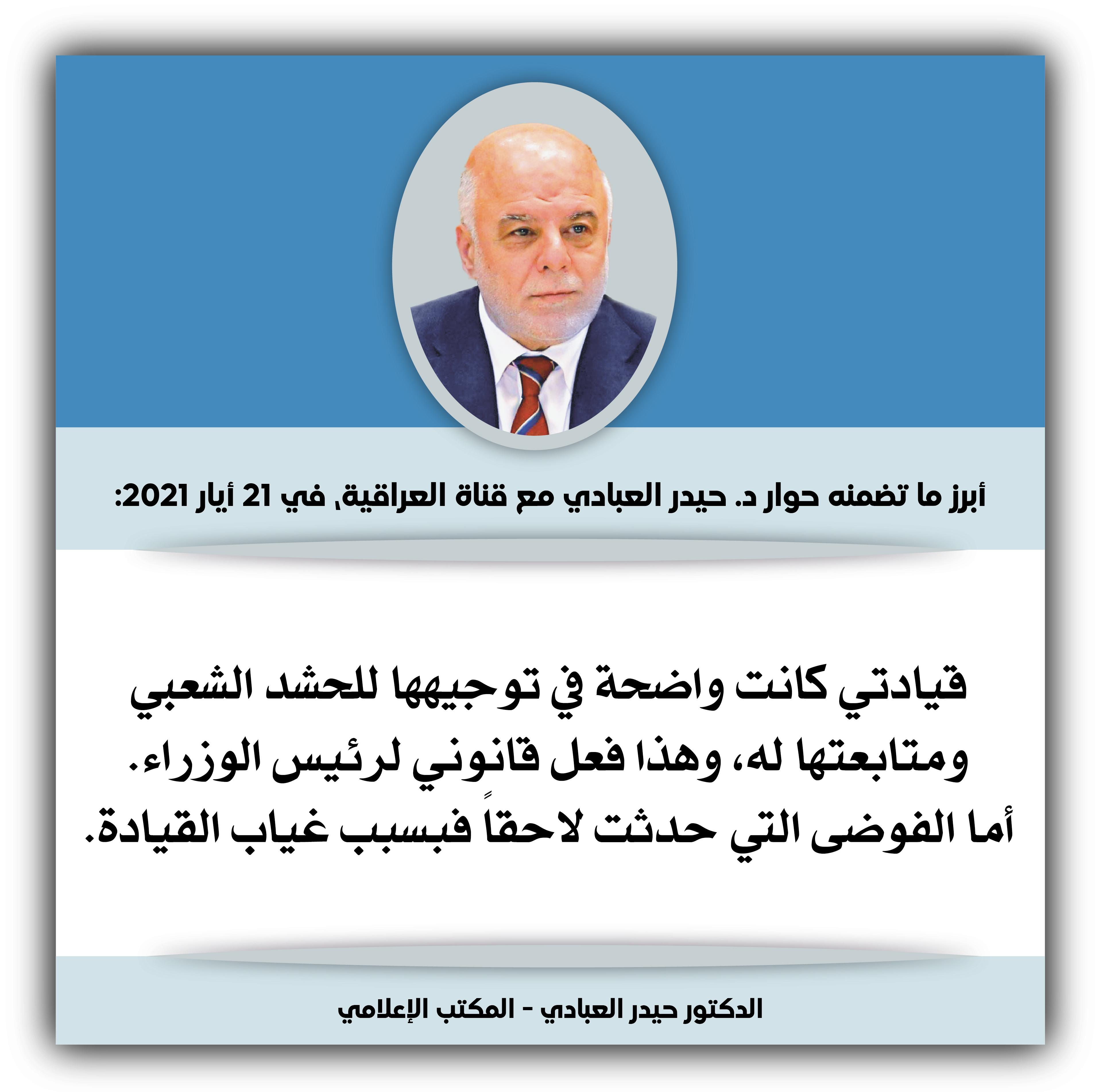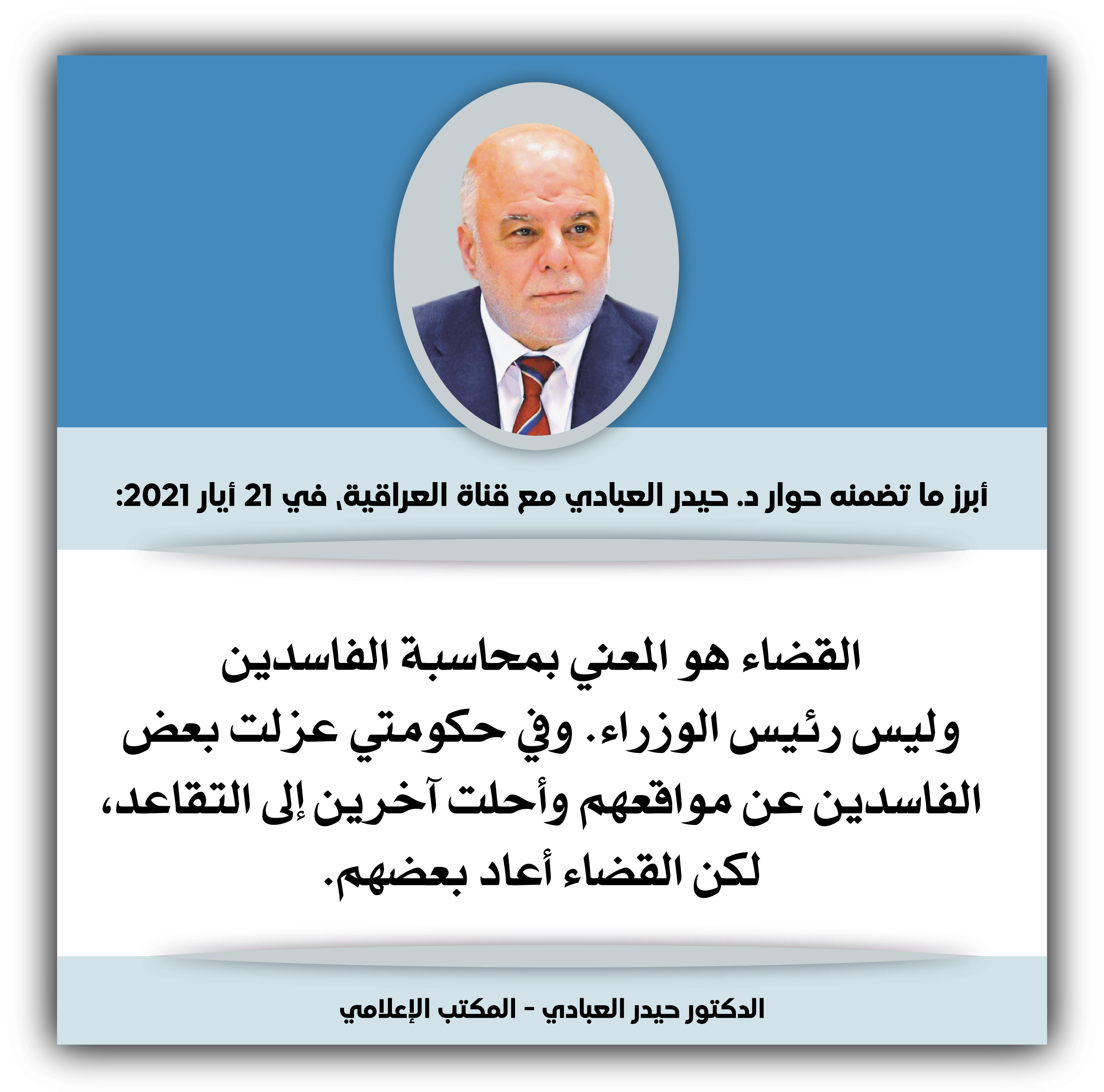 • العبادي: أنصح رئيس الوزراء بعدم الدخول في المعارك الجانبية وأن يركز في الأمور الأساسية