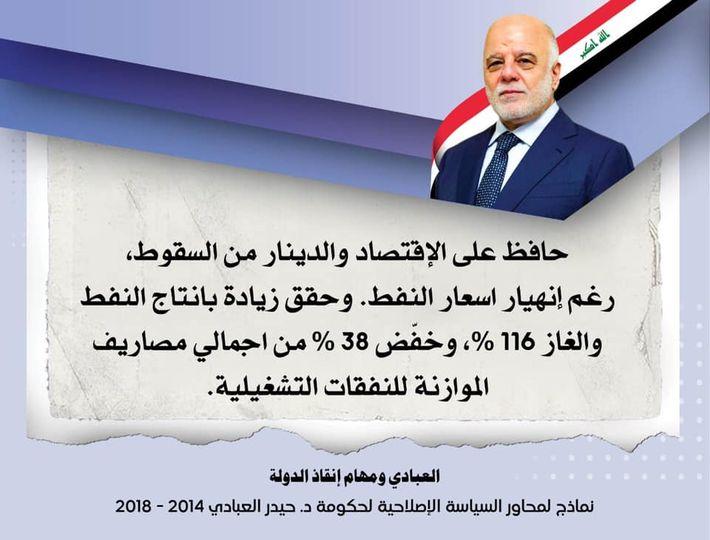 • إئتلاف النصر: مشروع وطني بقيادة الدكتور حيدر العبادي، يهدف لبناء وإدارة الدولة العراقية وفق مقومات الحكم الرشيد،.. يعمل لجميع العراقيين بقومياتهم وأديانهم وطوائفهم كافة، لتحقيق الوحدة والعدالة والسيادة والرفاه.