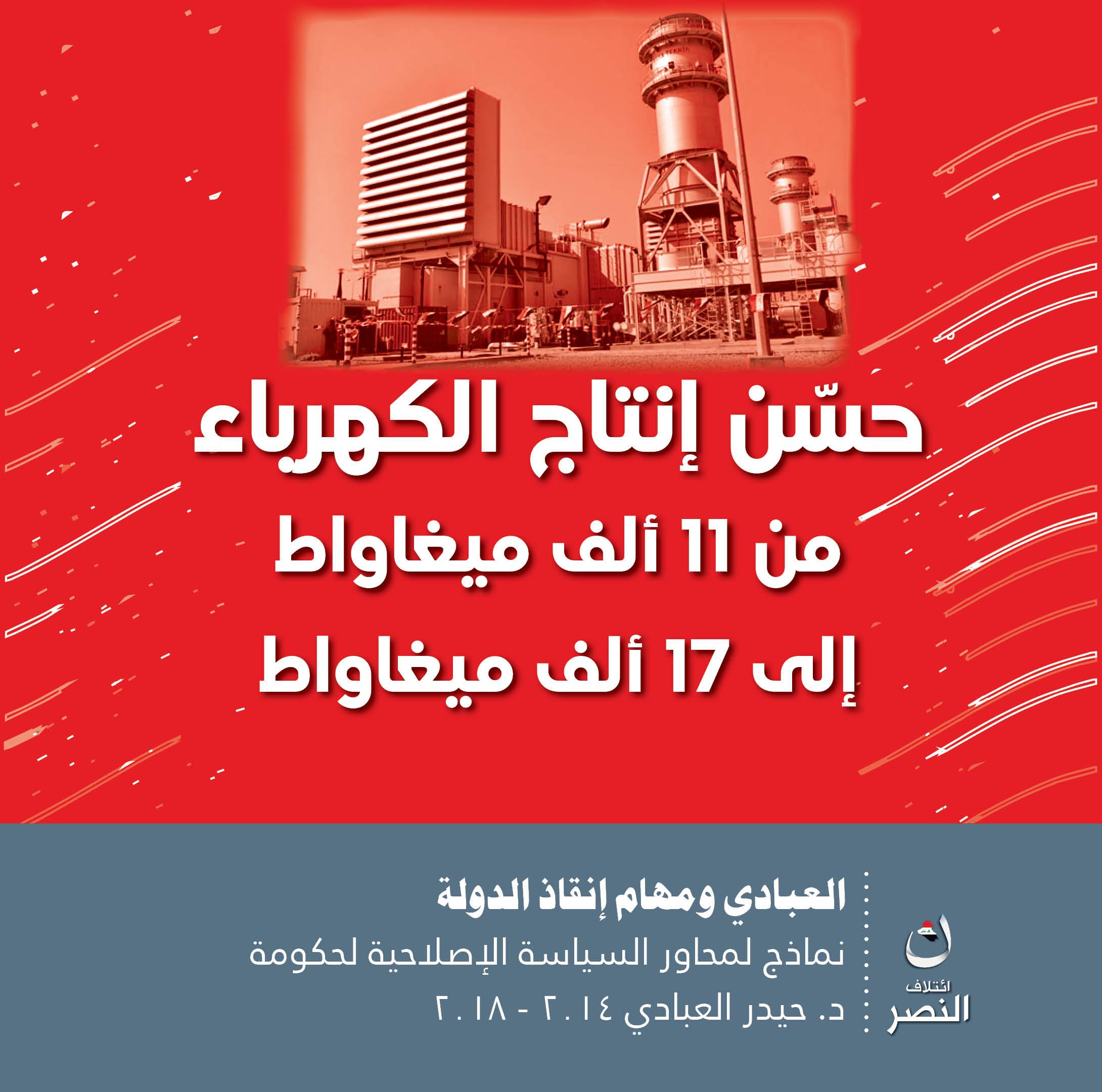 • إئتلاف النصر: مشروع وطني بقيادة الدكتور حيدر العبادي، يهدف لبناء وإدارة الدولة العراقية وفق مقومات الحكم الرشيد،.. يعمل لجميع العراقيين بقومياتهم وأديانهم وطوائفهم كافة، لتحقيق الوحدة والعدالة والسيادة والرفاه.