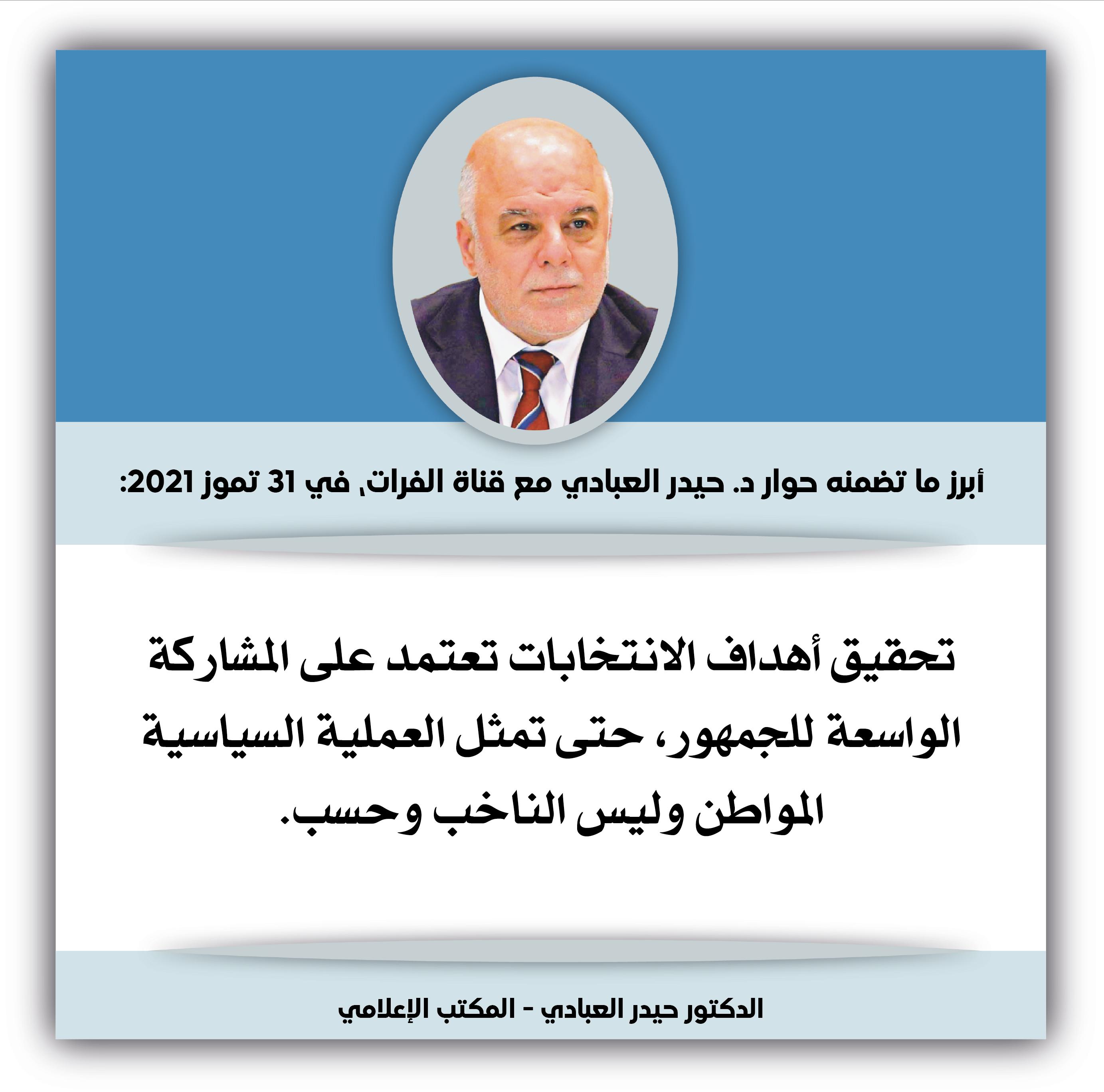 • إئتلاف النصر: مشروع وطني بقيادة الدكتور حيدر العبادي، يهدف لبناء وإدارة الدولة العراقية وفق مقومات الحكم الرشيد،.. يعمل لجميع العراقيين بقومياتهم وأديانهم وطوائفهم كافة، لتحقيق الوحدة والعدالة والسيادة والرفاه.