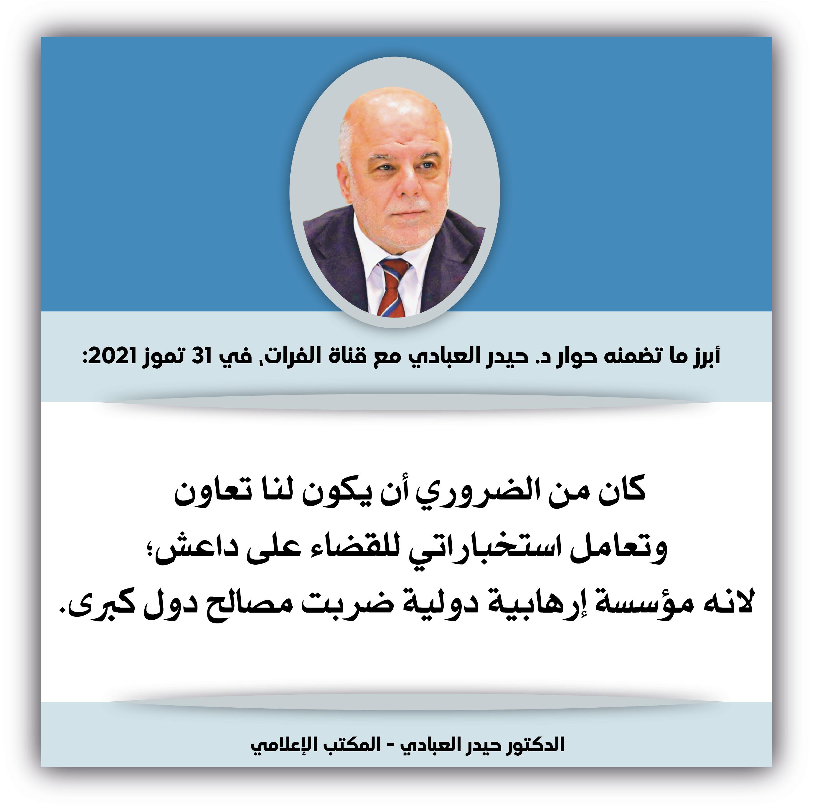 • العبادي: أنصح رئيس الوزراء بعدم الدخول في المعارك الجانبية وأن يركز في الأمور الأساسية