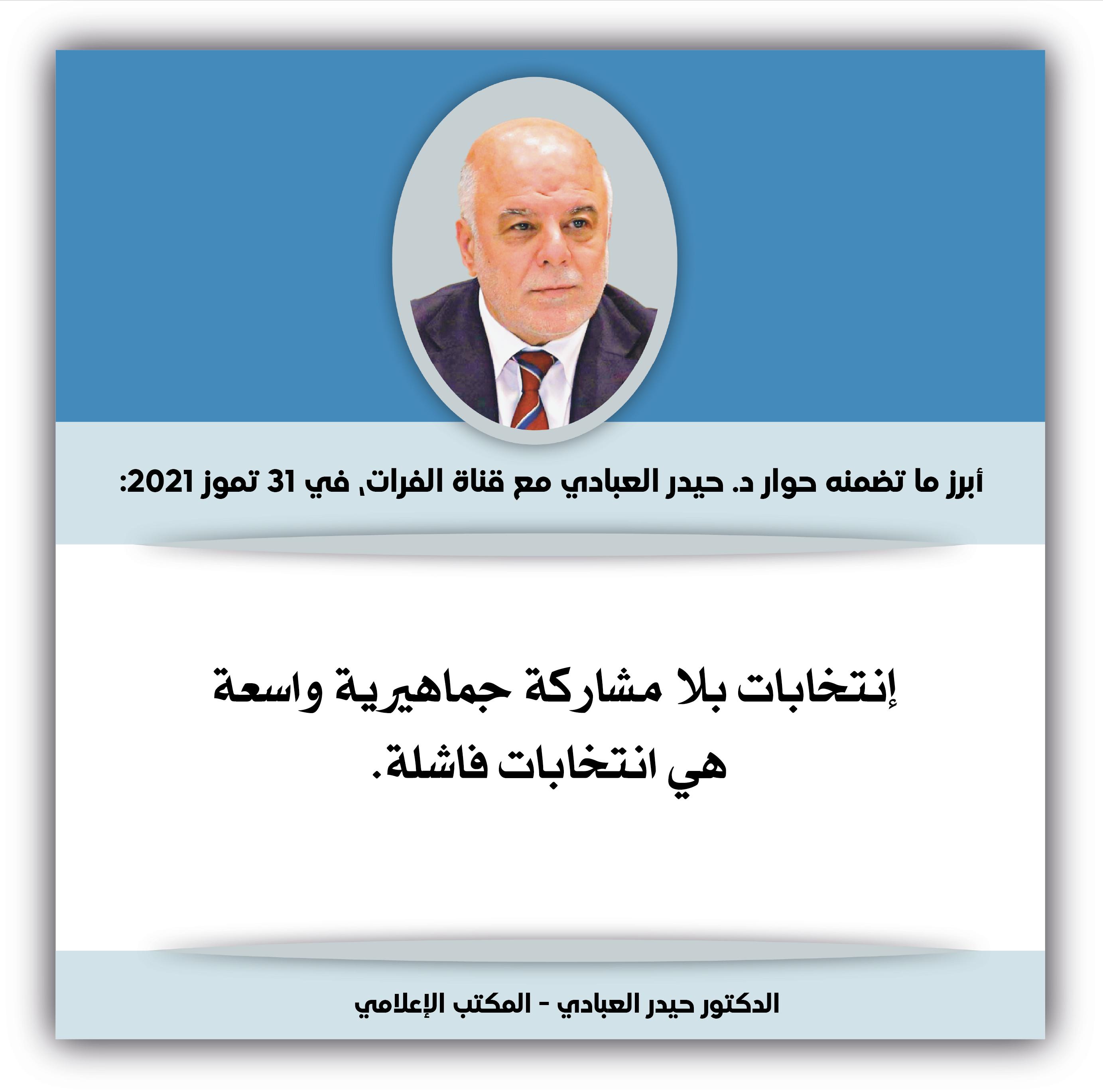 • العبادي: بيع الصوت الانتخابي واللا مسؤولية في الاختيار سينتهي بنا إلى انهيار اقتصادي