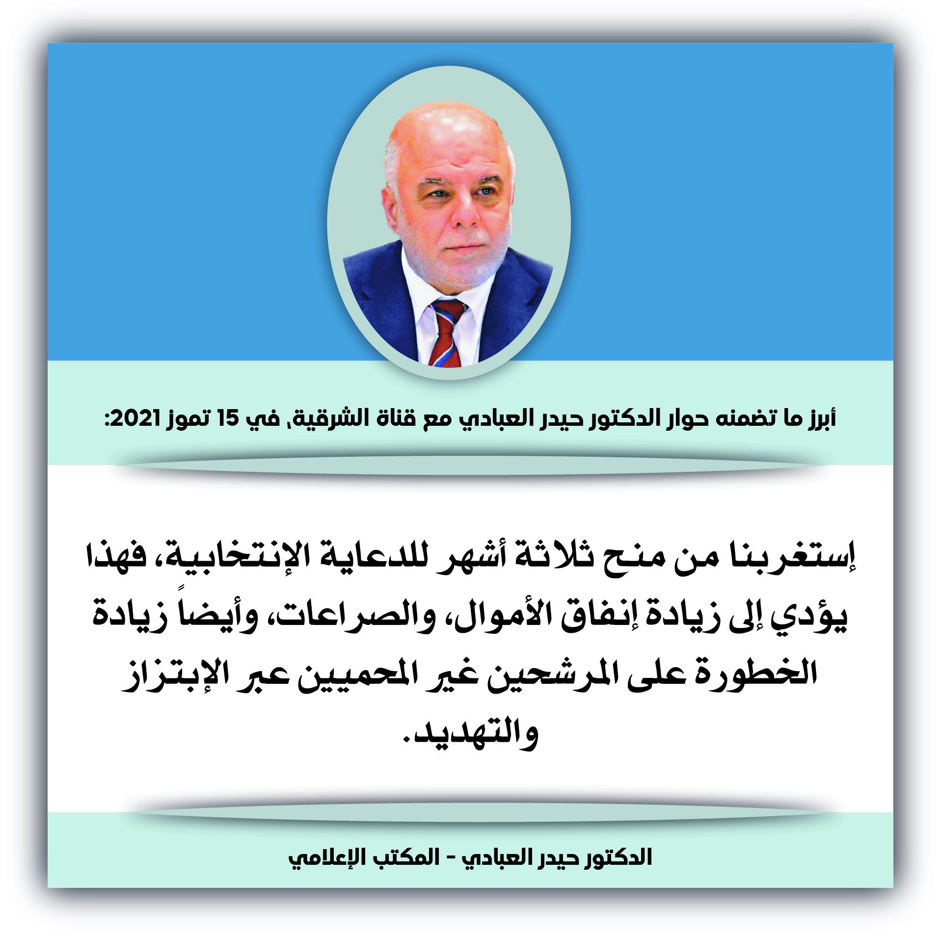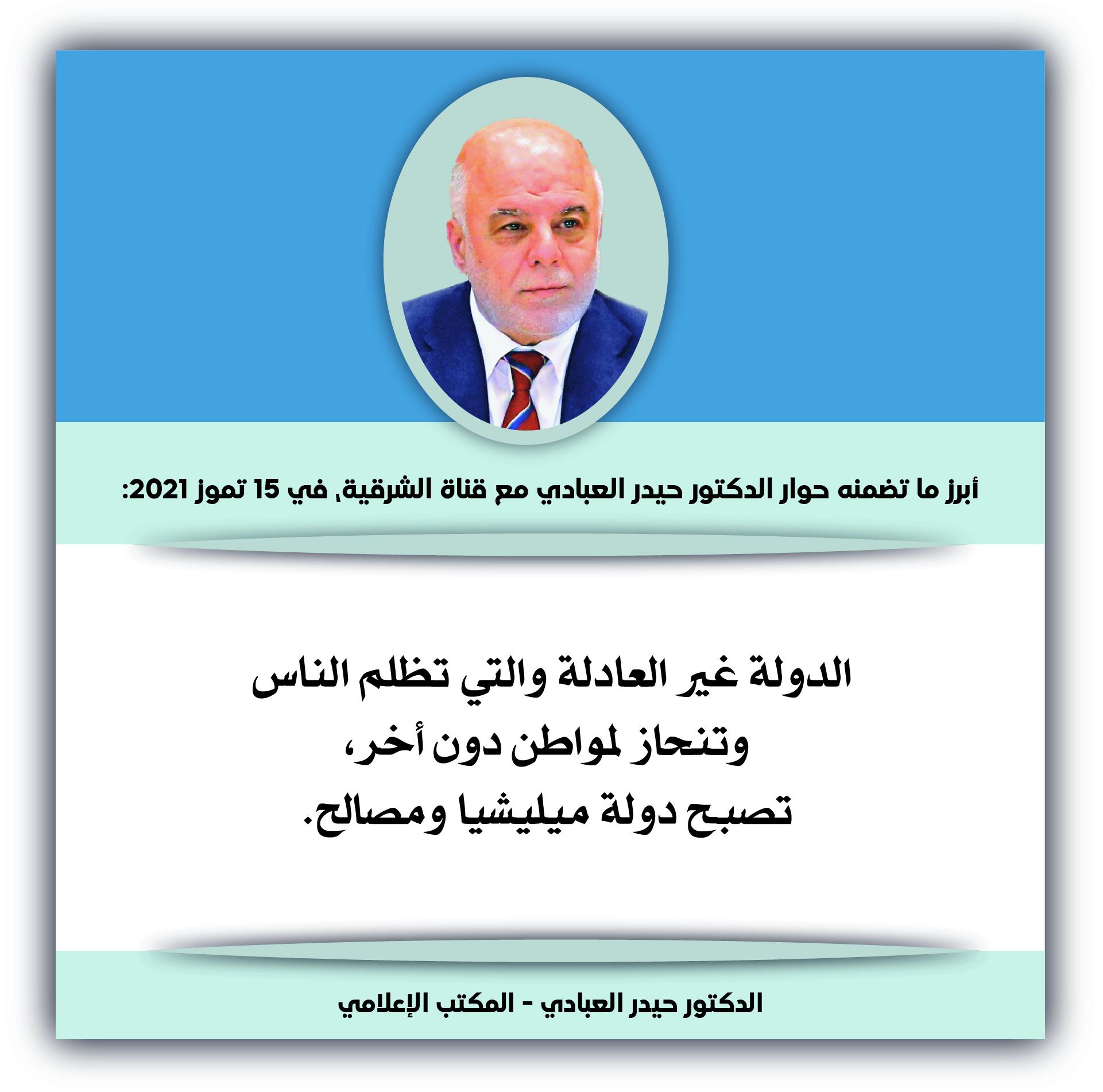 العبادي: أنصح رئيس الوزراء بعدم الدخول في المعارك الجانبية وأن يركز في الأمور الأساسية